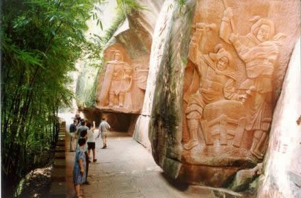 蜀南竹海景區(qū)內(nèi)竹林、絕壁、寺廟、古寨構(gòu)成的文化長(zhǎng)廊景觀,綿延20余公里,是天人合一的曠世奇觀。在千仞絕壁之上,仙寓硐、天寶寨、三十六計(jì)摩崖石刻等,是國(guó)內(nèi)罕見(jiàn)的佛道儒共融的中國(guó)丹霞絕壁文化長(zhǎng)廊景觀,是大自然的鬼斧神工和古今匠人智慧的結(jié)晶的杰作。