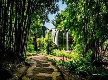 忘憂(yōu)谷位于竹海旅游集散中心萬(wàn)嶺小橋約一公里處,是蜀南竹海著名的景點(diǎn)。谷門(mén)用竹建成。溯幽谷小溪而上,蜿蜒蛇行,竹影叢叢。太陽(yáng)透過(guò)竹葉的間隙,撒下點(diǎn)點(diǎn)亮光。清撤的溪水,一路跌宕,演變成五疊瀑,珍珠瀑等眾多瀑布后,歡快地奔出山谷。踩在靜靜的石板上,觀賞著輕盈的竹林,聆聽(tīng)著溪水的清脆聲音,忘記生活的憂(yōu)愁。