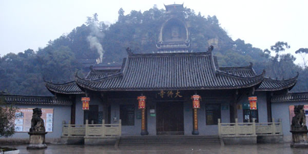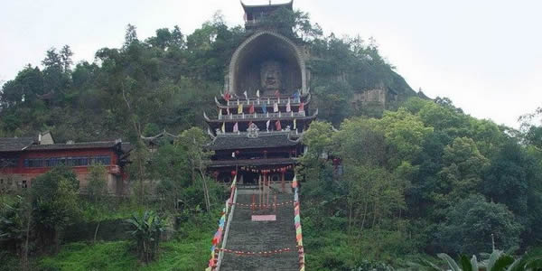 榮縣大佛:榮縣城東0.5公里有全國第二大佛——榮縣大佛,大佛寺內(nèi)半山之上,有一尊巍峨的石刻如來坐佛佛像,世稱榮縣大佛。大佛依山崖鑿成,通高36.67米,頭長8.76米,肩寬12.67米,膝高12米,腳寬3.5米,其頭部長8.76米,肩寬12.67米,腳寬3.5米。是一尊如來佛像,僅次于樂山彌勒大佛,為中國第二石刻大佛!s縣大佛開鑿于北宋元豐八年(公元1085年),完工于公元1092年,歷時八年始完工。大佛的頭頂上方有一道石條卷拱護罩,上刻“大開覺路”四字;崖頂上還有磚閣一座,遠看像在戴在大佛頭頂上的寶冠!〈蠓痂徔掏旯ず,即修有殿宇保護,根據(jù)《古今圖書集成》記載,時有“架殿十層,高四十七丈,闊十五丈”、“舊時寺門、抵今溪岸”。可見當時的恢宏氣勢,其后幾毀幾修,現(xiàn)存的殿宇為清代嘉慶、道光年間所建。1988年重建的大佛護身樓,是仿木仿古重檐歇山式建筑,既保護了大佛,又具游覽價值,逐層登樓近瞻佛容慈顏,從上到下盡觀大佛偉岸雄姿,鳥瞰榮城風貌,眺望遠山近巒。