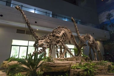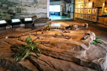 1.藏量巨大。館藏恐龍及魚類、兩棲類、龜鱉類、蛇頸龍類、鱷類等個(gè)體200多具。其中恐龍種類包括原蜥腳類、蜥腳類、獸腳類、鳥腳類和劍龍類等,數(shù)量占全川總數(shù)的1/2,占全國總數(shù)1/6,是名副其實(shí)的全國第一大恐龍冢穴,在國際上與之齊名的也僅有美國猶他州國立恐龍紀(jì)念館和加拿大阿爾伯塔省立恐龍公園。