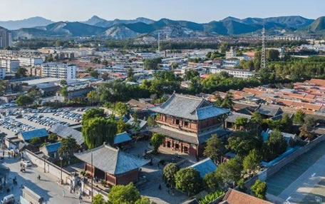 獨(dú)樂寺山門是我國現(xiàn)存最早的廡殿頂山門,山門面闊三間,進(jìn)深兩間,中間做穿堂,正脊兩端的鴟吻,造型生動(dòng)古樸為,遼代原物。