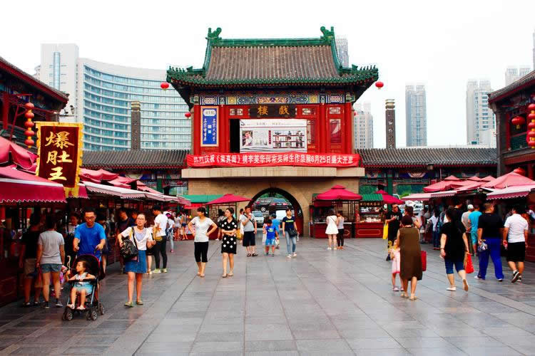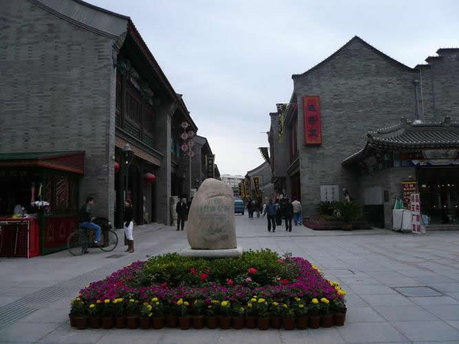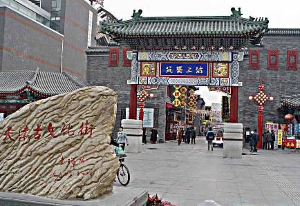 天津古文化街于一九八六年元旦建成開(kāi)業(yè),整體建筑為仿清民間式建筑風(fēng)格,天后宮(媽祖廟)位于全街的中心。全街近百家店堂,有經(jīng)營(yíng)天津地方特色的楊柳青年畫的楊柳青畫社,經(jīng)營(yíng)泥人彩塑的泥人張彩塑工藝品經(jīng)營(yíng)部,有經(jīng)營(yíng)文房四寶,名人字畫的四寶堂,春在堂,有經(jīng)營(yíng)文物古玩的文物公司萃文齋門市部,還有經(jīng)營(yíng)全國(guó)各地的景泰藍(lán),雙面繡,牙玉雕,藝術(shù)陶瓷,中西樂(lè)器金銀飾品等上萬(wàn)種名優(yōu)工藝品的幾十家店堂,各種商品貨真價(jià)實(shí),物美價(jià)廉,商家以質(zhì)量和信譽(yù)吸引中外游客。