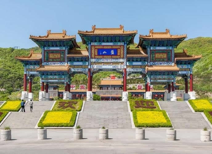 盤山萬(wàn)佛寺原名“石佛殿”,位于盤山南坡、石趣園西門。由照壁、天王殿、鐵鐘、大雄寶殿等四大部分組成。盤山萬(wàn)佛寺萬(wàn)佛殿,殿內(nèi)供奉有中國(guó)最大的三圣佛石雕,塑有10960尊佛像。1993年,韓振帶領(lǐng)玉石莊人依托豐厚的文化底蘊(yùn),將石佛殿重建于原址西1公里處,并更名為“萬(wàn)佛寺”。它背依陡峰,下臨危崖,是京東、津北惟一的佛、法、僧三士俱全的佛門圣地,數(shù)十里外即清晰可見(jiàn)!叭f(wàn)佛寺”三字為原全國(guó)政協(xié)副主席、全國(guó)佛教協(xié)會(huì)會(huì)長(zhǎng)趙樸初所題。