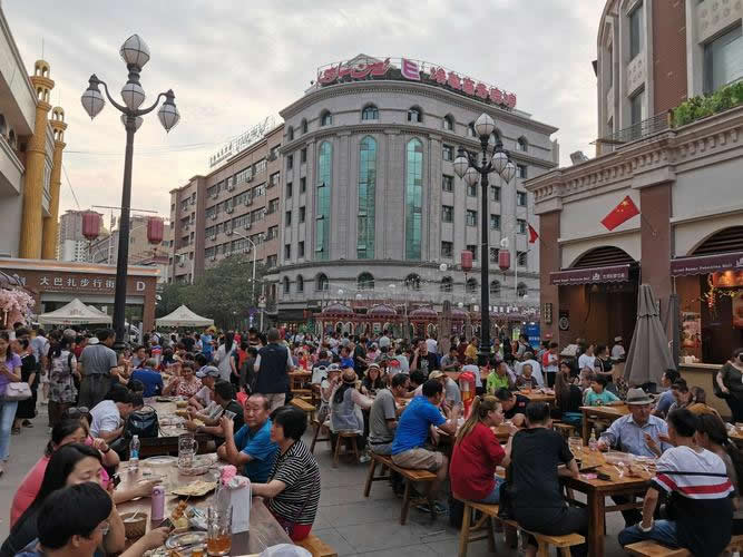 新疆國際大巴扎大型宴會廳是新疆較大的具備大型歌舞表演并同時可容納1000人用餐、以新疆民族歌舞、文化、飲食結(jié)為—體的大型歌舞宴會廳。飲食改變了傳統(tǒng)的圍餐制而采用了歐美西方的分餐形式,以新疆民間歌舞表演為主導(dǎo)飲食的觀賞性餐飲廣場。