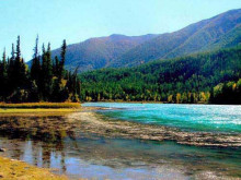 喀納斯風景區(qū),位于新疆阿爾泰山中段,地處中國與哈薩克斯坦、俄羅斯、蒙古國接壤地帶,景區(qū)面積10030平方公里。喀納斯國家級風景區(qū)的核心精華系冰川強烈刨蝕,冰石表物陰塞山谷,形成終表壟而成湖泊。湖面海拔1375米。湖形如彎月,長24.5公里,平均寬1.9公里,平均水深90米,最大深188.4米,面積6.9萬畝,蓄水量40億立方米,為中國深水湖之一。