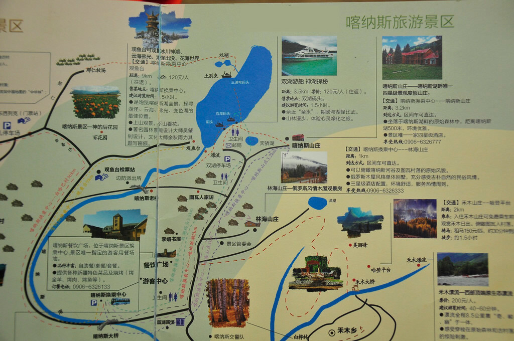喀納斯景區(qū)內(nèi)共有大小景點55處,分屬33種基本類型,主要包括哈納斯國家級自然保護區(qū)、喀納斯國家地質(zhì)公園、白哈巴國家森林公園、賈登峪國家森林公園、喀納斯河谷、禾木河谷、那仁草原、禾木草原及禾木村、白哈巴村、喀納斯村等國內(nèi)外享有盛名的八大自然景觀區(qū)和三大人文景觀區(qū)。
