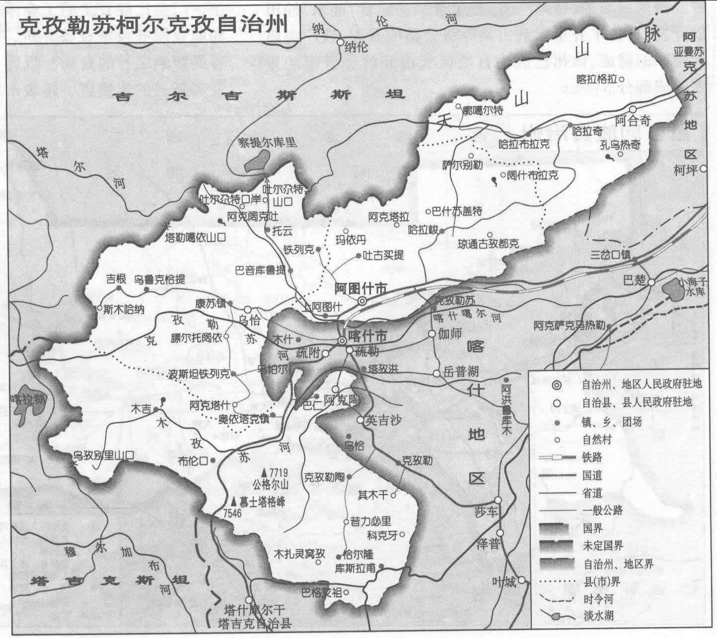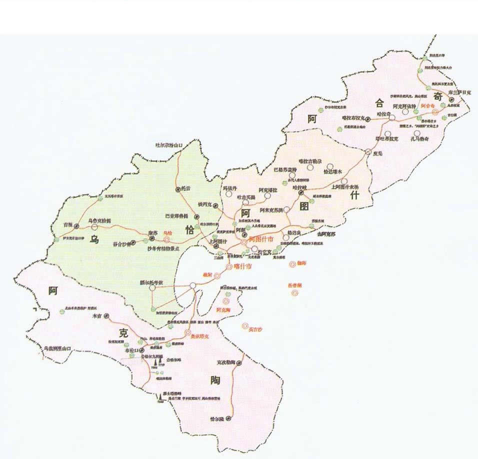 克孜勒蘇柯爾克孜自治州轄1個(gè)縣級(jí)市、3個(gè)縣: