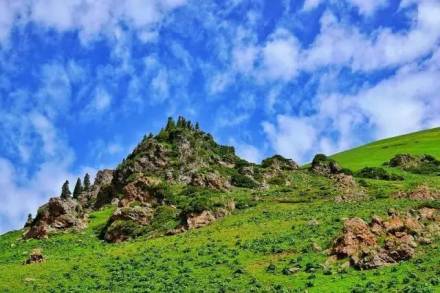 崗上地勢(shì)居高臨下,視野開(kāi)闊,遠(yuǎn)遠(yuǎn)望去就猶如一只牛臥在山上吃草,在這里不僅可以眺望遠(yuǎn)處連綿群山,四圍迢遆叢林,還可以俯瞰崗下的山谷,觀賞到山谷叢林間若隱若現(xiàn)的哈薩克冬窩子和坡地牧場(chǎng)上悠閑吃草的牛羊。臥牛崗下這條山谷,是盤龍景區(qū)無(wú)數(shù)山谷中最具經(jīng)典性的一座。