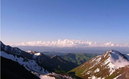 登山大營:在草甸草原自然景觀區(qū)和其上的高山礫漠自然景觀區(qū)的交接地帶,海拔為3540米,登博格達(dá)峰的大本營就設(shè)在這里。從天池南岸到大本營,登山者一般走下面兩條路:一是沿大東溝向東折南翻過“三個岔達(dá)坂”,這條路較為平緩;一是向南折東沿將軍溝翻過“以肯起達(dá)坂”,這條路則較為陡峭。兩條路的全程分別為25公里和30公里。