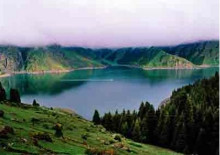 天池大海子:或稱主湖、大天池,位于博格達(dá)山脈北麓的中山峽谷森林帶內(nèi),湖面海拔1910米,成南北長方形(一說呈半月形),南北長3.5公里(3.4公里),東西寬0.5–1.5公里,周長9.7公里,平均水深60米(40米),東北處最大深度103米(102米),湖面面積一般為2.75平方公里(3.5平方公里),最大面積4.90平方公里,平均蓄水量1.3億立方米(一般為1.6億噸,最大容水量2億噸);成因眾說紛紜,有冰川形成說、斷陷形成說、崩塌形成說、泥石流形成說等,池水主要由降水、融雪水組成,其次是少量地下水補充;大天池酷似一個頭南身北的葫蘆,其南段的三工河就是葫蘆的把,湖面?zhèn)髡f是王母娘娘的梳妝鏡,名“天鏡”,故景稱為“天鏡浮空”。