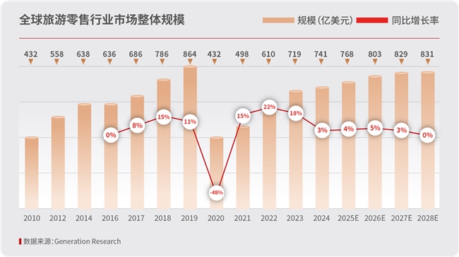 1.全球市場保持復蘇勢頭。2024年,全球免稅及旅游零售市場規(guī)模為741.3億美元,同比增長3%,恢復至2019年的85.8%,這一回升態(tài)勢,得益于國際旅游復蘇、政策支持與市場開放、新興市場崛起及數(shù)字化轉型多重合力,行業(yè)活力持續(xù)釋放。