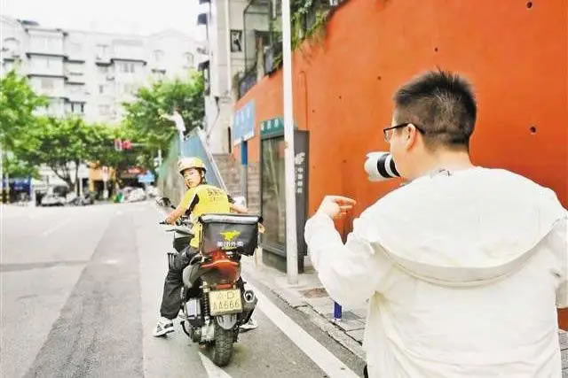 ▲梁平核桃灣,攝像師在拍攝微電影《追風(fēng)少年》中的外賣小哥片段。(梁平區(qū)融媒體中心供圖)