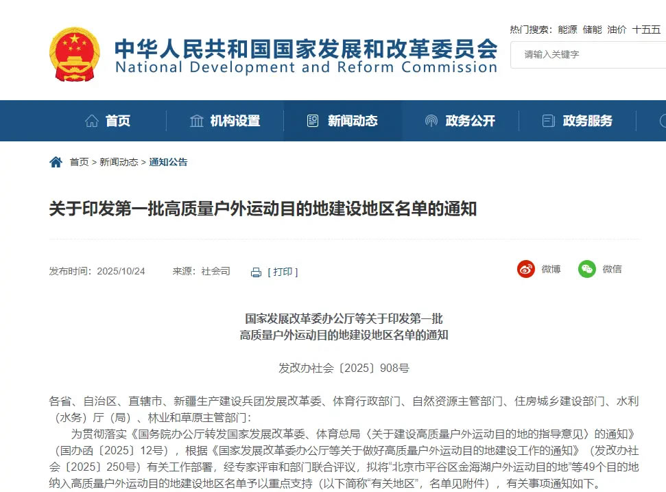 第一批高質(zhì)量戶外運(yùn)動目的地建設(shè)地區(qū)名單
