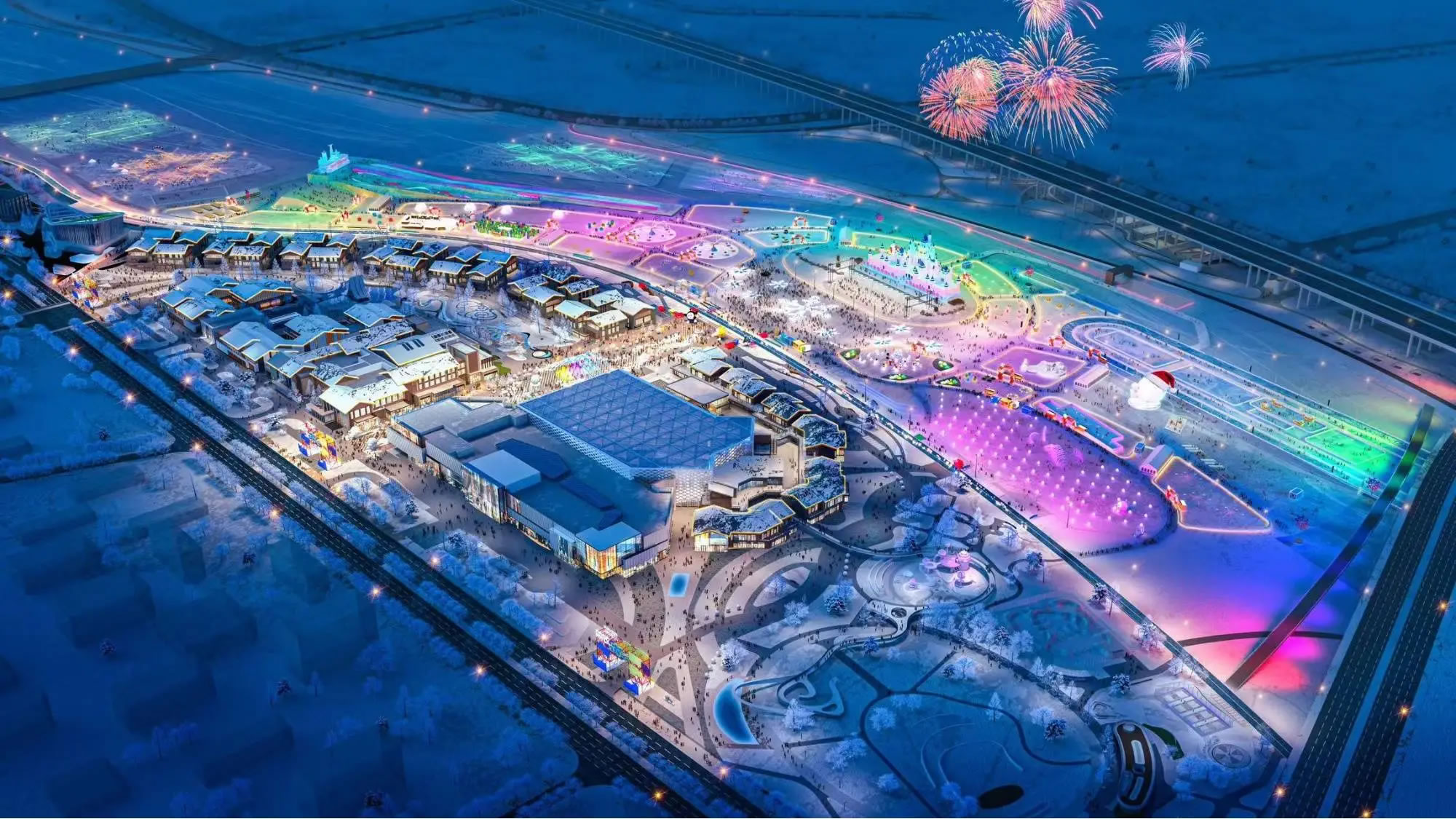 夜間效果圖(央廣網(wǎng)發(fā) 長(zhǎng)春粉雪嘉年華供圖)