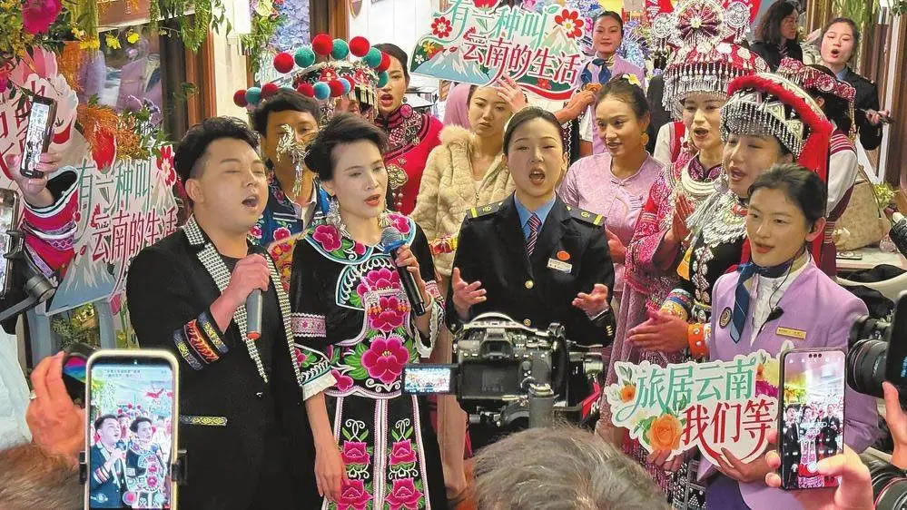 此次推廣活動串聯(lián)起昆明和蒙自,來自云南省花燈劇院、昆明市民族歌舞劇院等團(tuán)隊的數(shù)十名歌唱演員,在“星光·瀾湄號”列車和蒙自南湖畔,通過“一首民歌、一位歌手、一個推介”的方式,向公眾推薦“坐著火車游云南”的精品線路和特色旅居目的地,將有力提升“來云南、游云南、旅居云南”知名度,為冬季旅游消費市場注入活力。