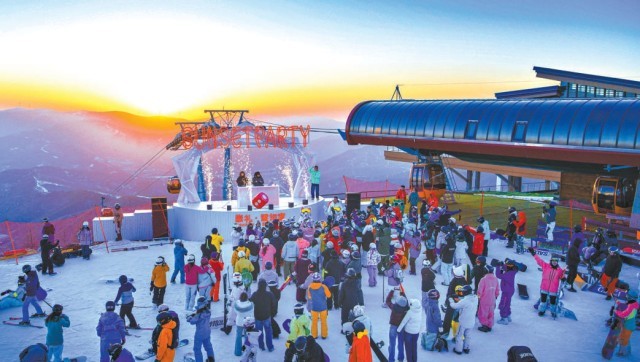 在崇禮,雪如意滑雪場舉行“落日派對”,吸引了眾多雪友參加。受訪者供圖