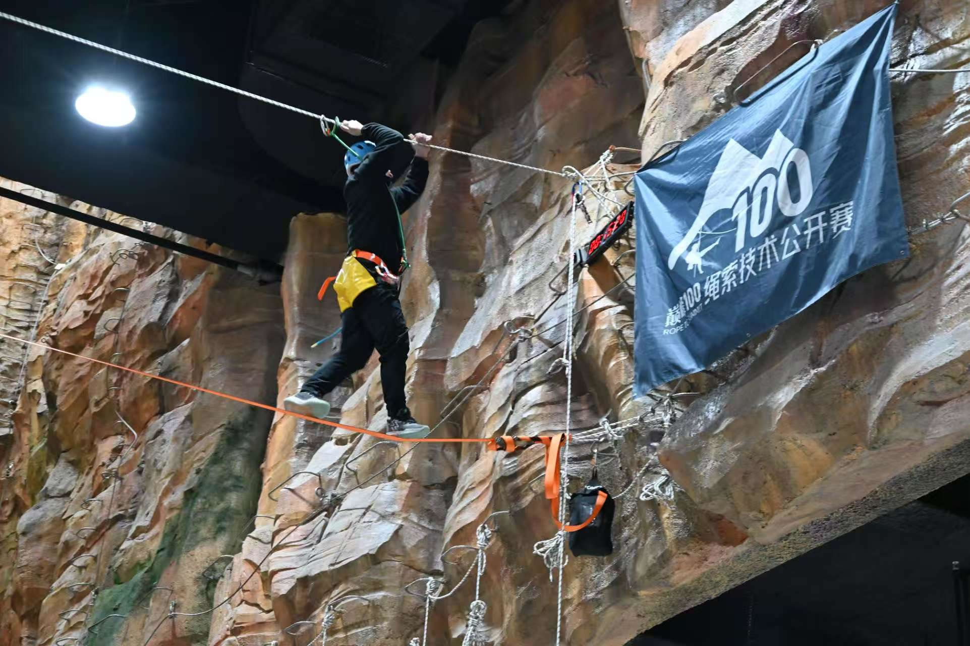首屆“天恒文旅·恒探界室內(nèi)探險旅游節(jié)”內(nèi)容設計兼顧專業(yè)性與大眾性,強調(diào)參與感與體驗性。其中,“大眾繩索探險趣味賽”作為貫穿活動始終的核心板塊,將面向14至60周歲的廣泛人群開放。賽事設置高空走扁帶、通天戰(zhàn)繩、橫渡繩橋、扁帶躺繩四項趣味項目,參賽者可在專業(yè)教練指導與完善安全防護下體驗繩索運動的樂趣;顒硬捎妙A選賽與總決賽機制,參與者可重復挑戰(zhàn)刷新成績,優(yōu)勝者將獲得獎勵。這一低門檻、高趣味的賽事設計,有效降低了專業(yè)戶外運動的參與壁壘,是推動全民健身向生活化、趣味化延伸的有益探索。