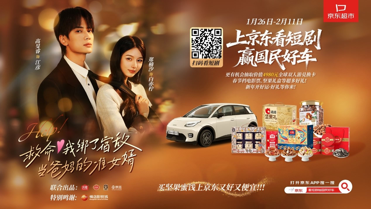 其中,京東旅行順應(yīng)當(dāng)下短劇熱門趨勢(shì),與京東超市堅(jiān)果蜜餞品類攜手創(chuàng)新內(nèi)容營(yíng)銷合作模式,聯(lián)合橫店影視城和沃隆、三胖蛋、臻味、京覓等堅(jiān)果品牌,聚焦春節(jié)團(tuán)圓、父母催婚等節(jié)點(diǎn)話題打造的定制輕喜微短劇,在呈現(xiàn)闔家歡樂(lè)的劇情中,自然融入京東堅(jiān)果品類心智,并聯(lián)合站內(nèi)看短劇贏國(guó)民好車的互動(dòng)活動(dòng),為品類品牌的年貨節(jié)營(yíng)銷打開(kāi)新的思路,實(shí)現(xiàn)曝光-心智-引流-轉(zhuǎn)化的營(yíng)銷閉環(huán)。