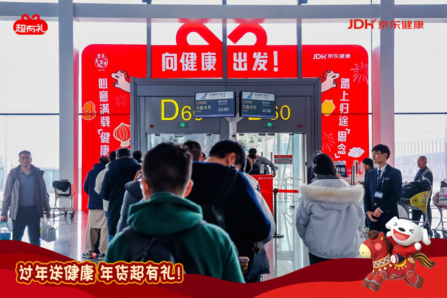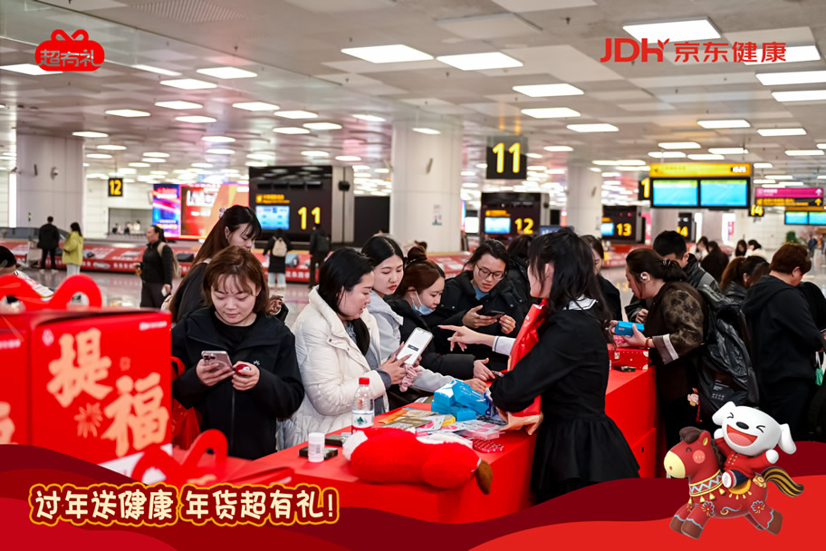 京東旅行攜手京東健康“超有禮”IP在此次年貨節(jié)中,通過(guò)全鏈路航空?qǐng)鼍盃I(yíng)銷實(shí)現(xiàn)了品牌與用戶的深度互動(dòng),圍繞“機(jī)場(chǎng)快閃—主題登機(jī)口—主題航班—行李傳送帶驚喜事件”構(gòu)建貫穿出行始終的品牌體驗(yàn)閉環(huán),以創(chuàng)新的事件組合與場(chǎng)景融入,將健康關(guān)懷自然嵌入用戶春運(yùn)旅程。這一策略高度適配春節(jié)出行場(chǎng)景,不僅精準(zhǔn)觸達(dá)返鄉(xiāng)、探親、商旅等多類用戶群體,更通過(guò)具象化的健康禮品派發(fā)、溫情驚喜體驗(yàn)等,持續(xù)強(qiáng)化“春節(jié)送健康禮”的消費(fèi)心智,成功將健康禮贈(zèng)塑造為新年問(wèn)候的情感載體與品質(zhì)之選。