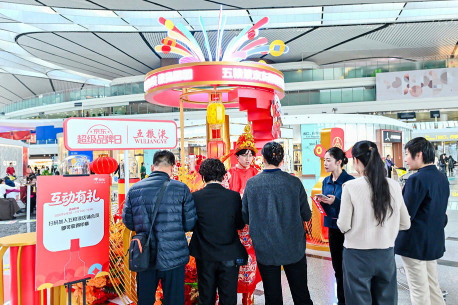 京東旅行攜手五糧液在此次年貨節(jié)中圍繞“機(jī)場(chǎng)快閃—主題航班—行李傳送帶驚喜事件”構(gòu)建全鏈路航空?qǐng)鼍盃I(yíng)銷體系,通過(guò)場(chǎng)景沉浸與體驗(yàn)互動(dòng)相結(jié)合的方式,創(chuàng)新打造“空中禮遇”高端消費(fèi)場(chǎng)景。這一營(yíng)銷策略精準(zhǔn)契合春節(jié)出行期間高品質(zhì)用戶的禮贈(zèng)需求,在航空?qǐng)鼍斑@類高凈值人群聚集場(chǎng)景中實(shí)現(xiàn)精準(zhǔn)觸達(dá)。通過(guò)文化展示、互動(dòng)與禮贈(zèng)驚喜的多維滲透,五糧液X京東超級(jí)品牌日不僅強(qiáng)化了其作為春節(jié)高端禮贈(zèng)首選品牌的認(rèn)知,更成功將“飛行途中·禮載心意”提升為春節(jié)消費(fèi)的新風(fēng)尚,進(jìn)一步鞏固了在高端年貨市場(chǎng)中的心智占位與品牌勢(shì)能。