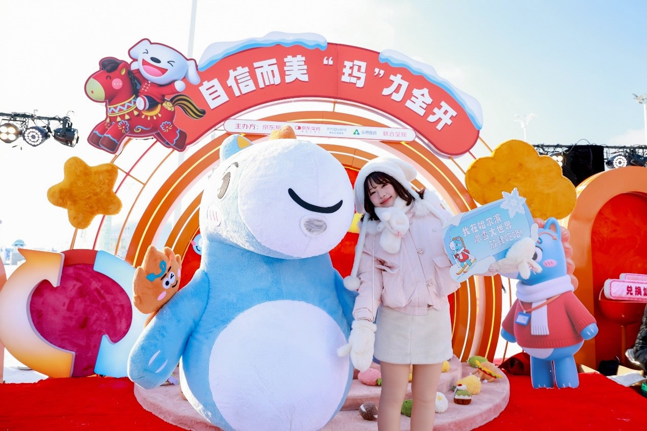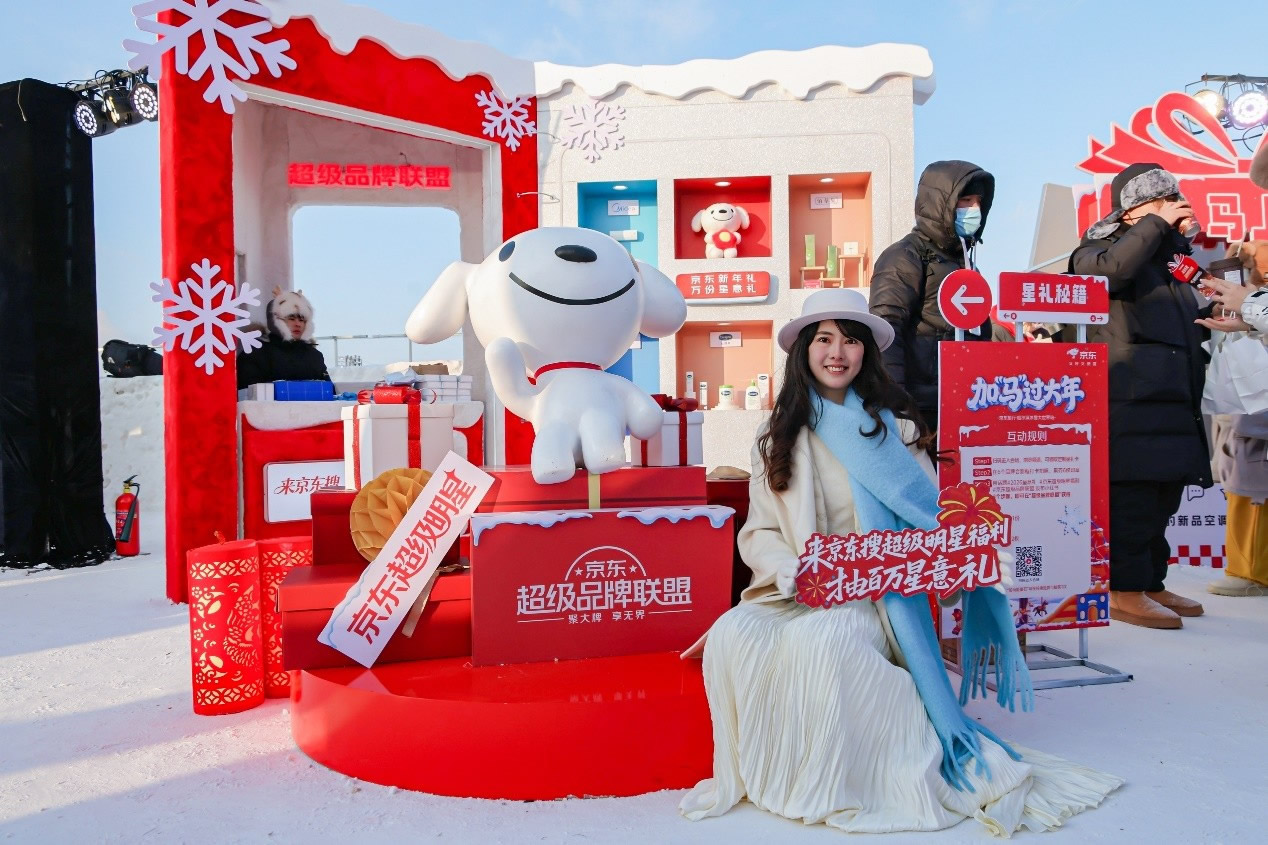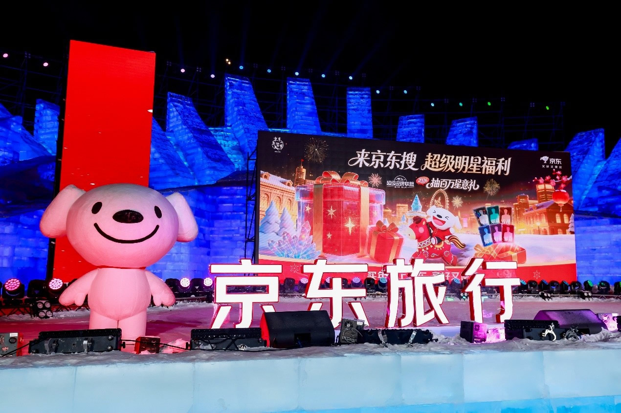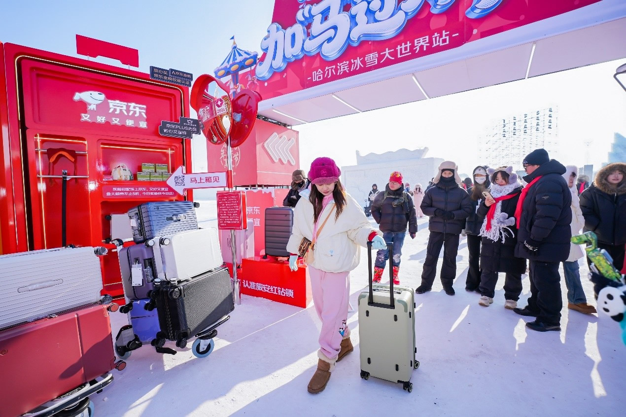 京東旅行在此次年貨節(jié)中深度融合兩大頂流文旅場(chǎng)景,實(shí)現(xiàn)線下事件與品牌傳播的雙重引爆。在哈爾濱冰雪大世界,京東旅行攜手京東箱包、京東健康、超級(jí)品牌聯(lián)盟、旅安、歐舒丹等品類品牌,依托其冬季頂流景區(qū)的話題熱度,通過(guò)多維互動(dòng)營(yíng)銷方式打造沉浸式跨界體驗(yàn):不僅設(shè)置“冰雪年貨快閃活動(dòng)”開(kāi)展品牌展示與互動(dòng)游戲,更通過(guò)地標(biāo)冰雪摩天輪、無(wú)人機(jī)表演、冰雪大舞臺(tái)廣告/立體字/主持人口播、區(qū)域植入品牌立體廣告等豐富營(yíng)銷形式,共同實(shí)現(xiàn)品牌與景區(qū)流量的深度共振。