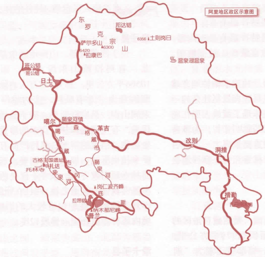 札達(dá)縣 面積24600平方千米,人口8454,政府駐托林鎮(zhèn),下轄1個(gè)鎮(zhèn),6個(gè)鄉(xiāng)