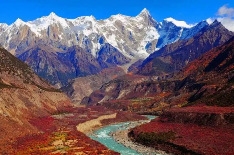 雅魯藏布江大峽谷兩側,壁立高聳的南迦巴瓦峰(海拔7782米)和加拉白壘峰(海拔7234米),其山峰皆為強烈上升斷塊,巍峨挺拔,直入云端。峰嶺上冰川懸垂,云霧繚繞,氣象萬千。