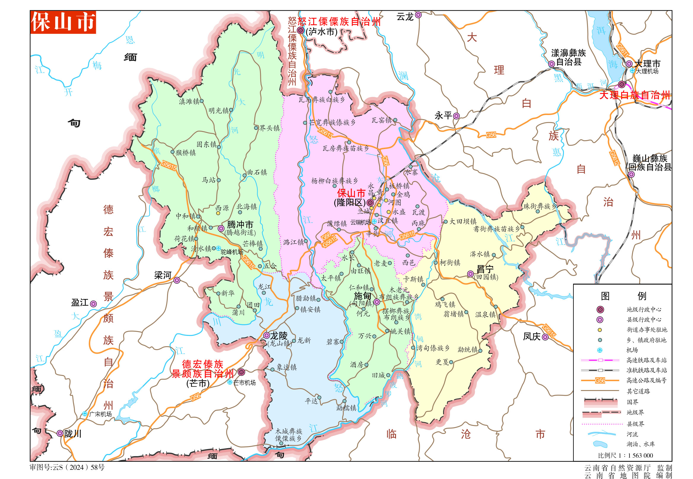 1956年,保山專區(qū)撤銷,所轄保山縣、昌寧縣、騰沖縣、龍陵縣劃入德宏傣族景頗族自治州。