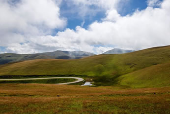 一眼眼山泉匯成一洼洼積水,一洼洼積水連成一道道溪流,隨意在草山之間流淌,曲曲折折,蜿蜒蛇行,時(shí)時(shí)有水往高處流的錯(cuò)覺(jué)。