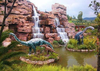 由“侏羅紀(jì)大瀑布”、“群龍對(duì)峙”、“腕龍相親”、“氣龍追逐”、“雙龍飲瀑”、“霸王龍窺獵”、“侏羅紀(jì)叢林”、“海棗之王”、“沙漠之林”等九大景觀真實(shí)再現(xiàn)了侏羅紀(jì)時(shí)代恐龍王國(guó)的生活場(chǎng)景,構(gòu)造出一個(gè)1億年前生氣勃勃、繁榮昌盛的侏羅紀(jì)世界,讓游客飽享一頓視覺(jué)大餐。