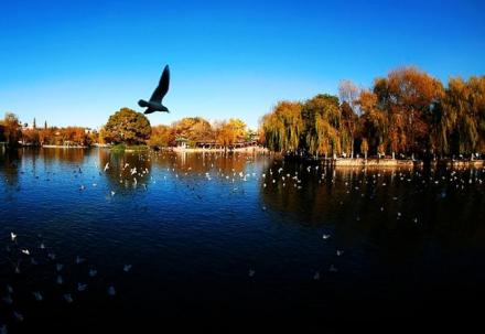 翠湖位于昆明市五華山西麓,占地面積352畝。湖東北有“九泉所出,匯而成池”,故又名“九龍池”。堤畔遍植垂柳,柳枝拂面,湖內(nèi)多種荷花,藕花飄香,舊有“十畝荷花魚(yú)世界,半城楊柳撫樓臺(tái)”之聯(lián),被譽(yù)為“城中碧玉”。有亭、臺(tái)、回廊、曲橋等建筑,其建筑精致玲瓏,亭閣均有匾對(duì),歌詠園中的景觀。