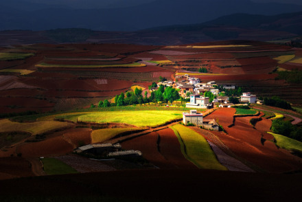 東川紅土地被專(zhuān)家認(rèn)為是全世界除巴西里約熱內(nèi)盧外最有氣勢(shì)的紅土地,而其景象比巴西紅土地更為壯美。東川紅土地指的是位于昆明市東川區(qū)西南40多千米的新田鄉(xiāng)、有一名叫“花石頭”(在109千米程碑處)的地方,這里方圓近百里的區(qū)域是云南紅土高原上最集中、最典型、最具特色的紅土地。