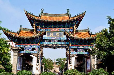 歷史悠久的官渡鎮(zhèn)位于昆明東南郊,是昆明地區(qū)著名的歷史文化古鎮(zhèn)之一。官渡古鎮(zhèn)大門(mén)(大牌坊)位于昆明東南郊 8 千米處,地處滇池北岸、寶象河下游,占地 17 平方千米。 官渡古鎮(zhèn)文化古跡眾多, 人文景觀豐富, 在不到 1.5 平方千米的面積內(nèi)就有唐、 宋、 元、明、清時(shí)期的五山、六寺、七閣、八廟等多處景觀。