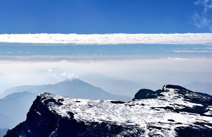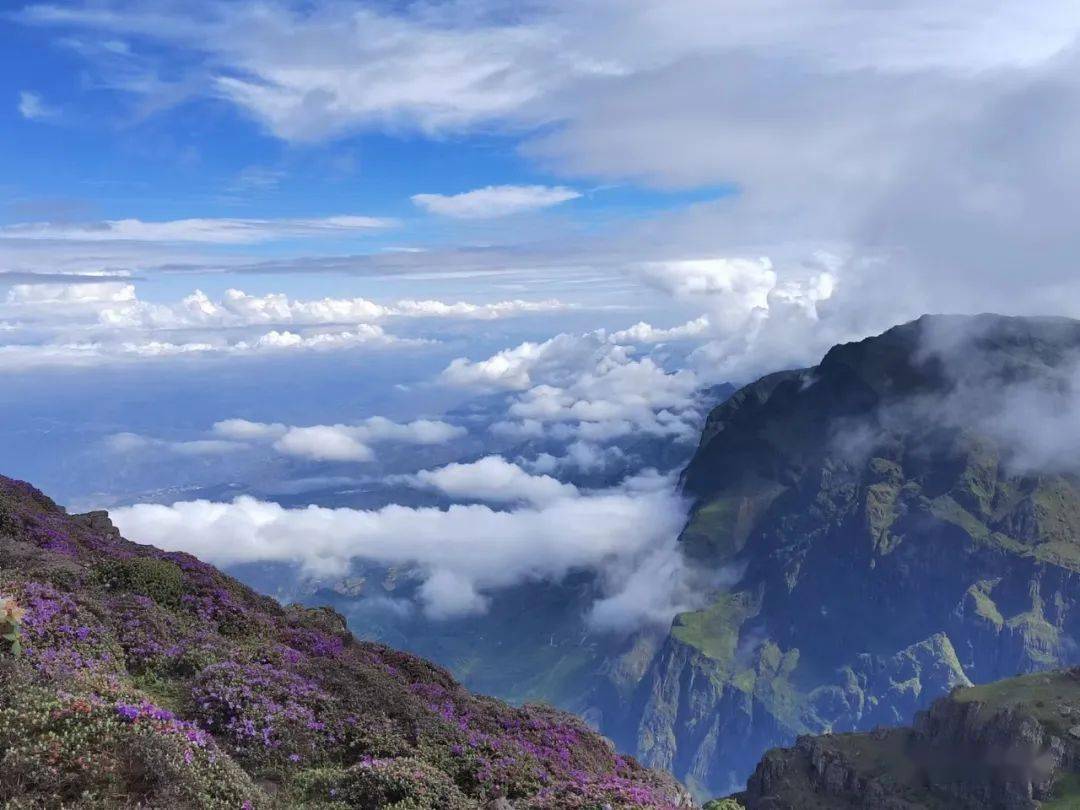 毛澤東同志“烏蒙磅礴走泥丸”的詩(shī)詞就是對(duì)烏蒙山的最好寫(xiě)照。大牯牛寨山是烏蒙山脈最高峰,氣勢(shì)逼人,此山距東川城區(qū)水平距離僅9千米,海拔高差卻達(dá)2767.3米。山上巖石大都為堅(jiān)硬的石灰?guī)r,呈褐色。