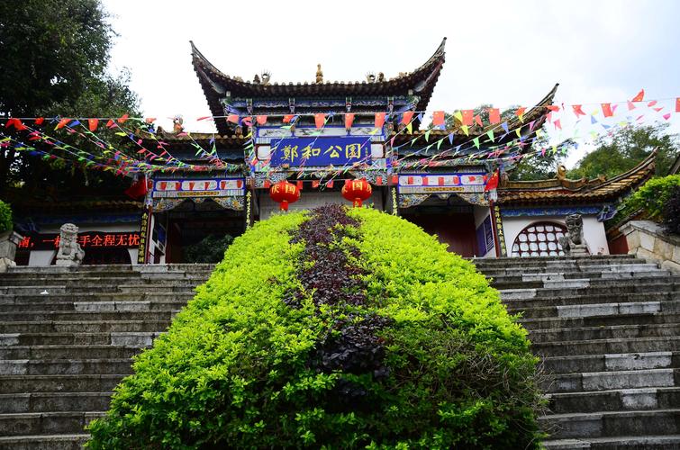 鄭和公園座落在滇池風景區(qū)南岸,晉寧區(qū)城的月山上,始建于1978年,原名為月山公園,1980年為了紀念鄭和,將月山公園更名為“鄭和公園”,占地面積16.67公頃(250畝)。公園以鄭和文化為主題,被列為昆明新十六景之一,名為“月山帆影”,1988年命名為滇池國家重點風景名勝區(qū),園內(nèi)主要有鄭和雕像、三寶樓、鄭和碑林、馬哈只墓、鄭和紀念館、鄭和故居等景點。其中,“馬哈只墓碑”為國家級重點文物保護單位,“鄭和紀念館”為云南省首批愛國主義教育基地。