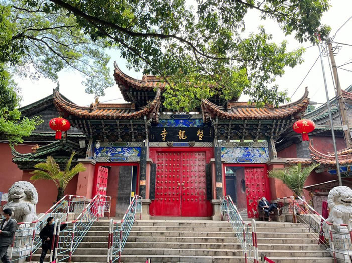 盤龍寺,位于滇池東岸盤龍山,距晉城鎮(zhèn)東南3千米,距昆明市區(qū)約40千米,是云南著名的佛教圣地之一。盤龍山方圓數(shù)十里,群山環(huán)抱、松濤萬頃,主峰巍峨聳立、中峰突起,史稱盤龍,盤龍寺由此得名。盤龍寺建于元朝至正七年(1347年),明初又繼續(xù)擴建寺院,初具規(guī)模。歷代文人在盤龍寺留下了許多詩詞書畫、楹聯(lián)、橫匾和碑銘等,其中以元梁王、明朝永歷帝和徐霞客等名人的手跡較為珍貴。1983年,盤龍寺被列為昆明市重點文物保護單位。
