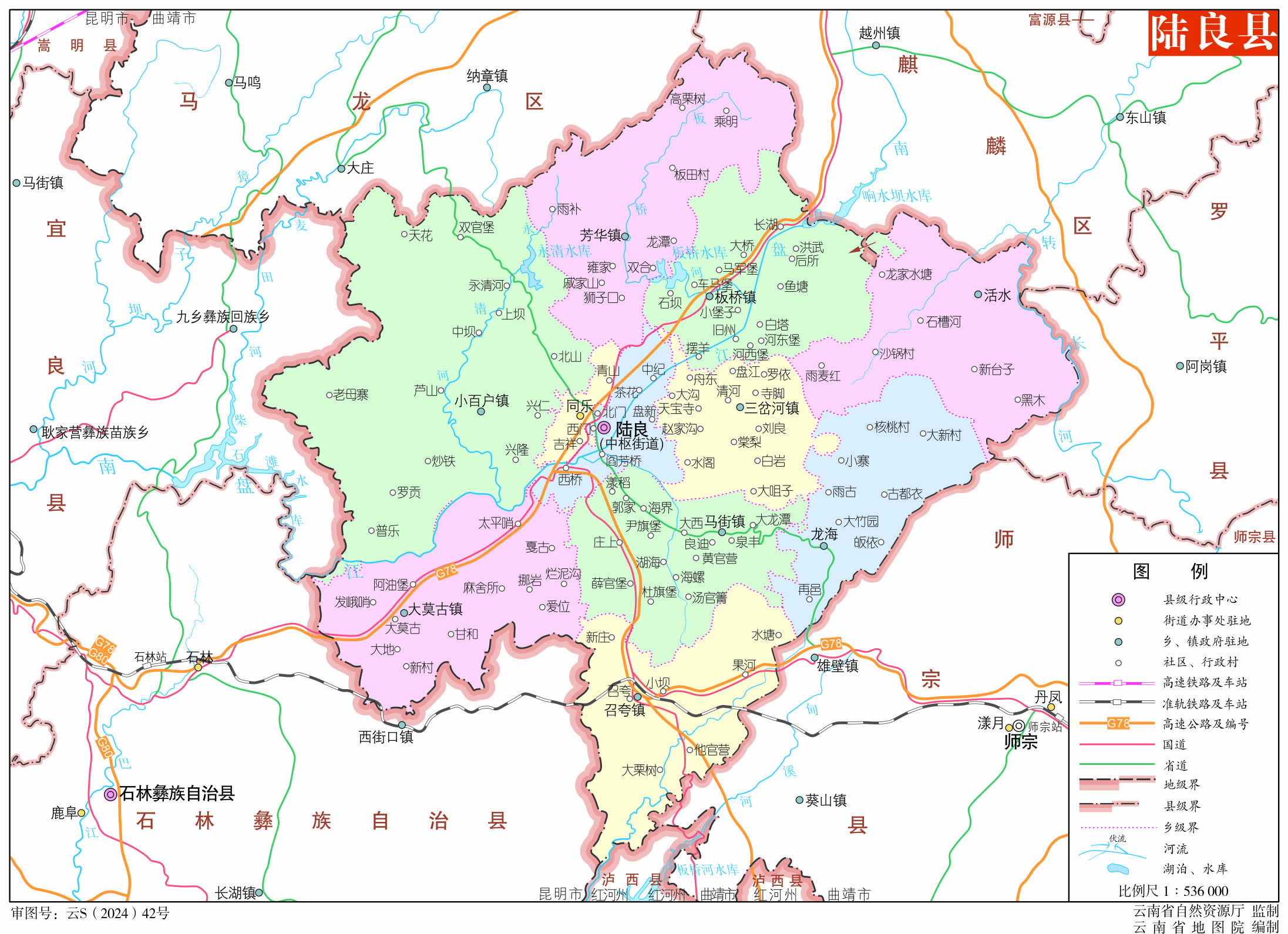 陸良縣轄2個(gè)街道、7個(gè)鎮(zhèn)、2個(gè)鄉(xiāng):