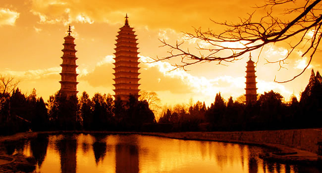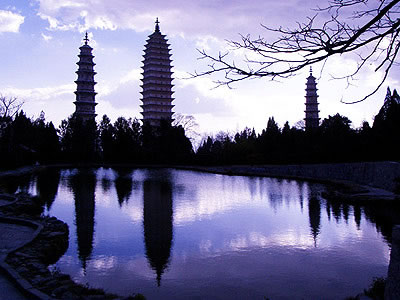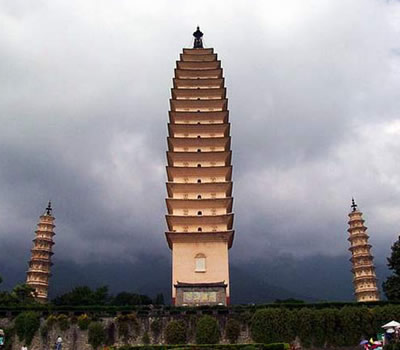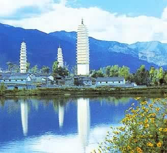 大理崇圣寺三塔,距離下關(guān)14公里,位于大理以北1.5公里蒼山應(yīng)樂峰下,背靠蒼山,面臨洱海,三塔由一大二小三座佛塔組成,呈鼎立之態(tài),遠遠望去,雄渾壯麗,是蒼洱勝景之一。