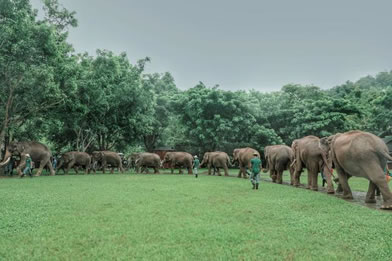 游客到野象谷,白天可觀賞訓(xùn)練過(guò)的大象表演節(jié)目,夜晚可一睹從森林走到此地覓食的真正野象風(fēng)姿。
