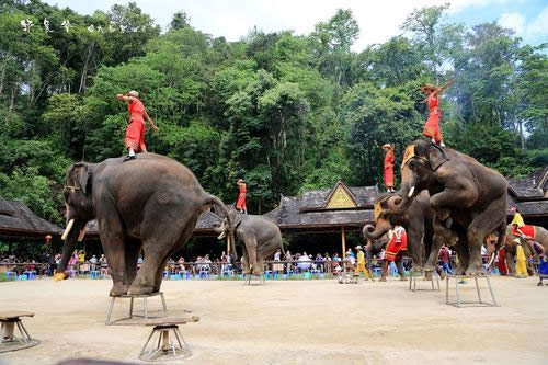 步行道旁的森林中,處處可見(jiàn)野象出沒(méi)和活動(dòng)的痕跡,幸運(yùn)的游客或許還在傍晚之際或黎明之時(shí)看到林間漫游的野象群。在野象谷,游人可觀看大象表演節(jié)目,這里現(xiàn)有馴養(yǎng)的大象16頭,這是我國(guó)第一所馴象學(xué)校,這些訓(xùn)練有素的龐然大物,會(huì)向游客鞠躬,表示歡迎,會(huì)作頭頂?shù)亍⒛_朝天的倒立,會(huì)合著音樂(lè)的旋律跳舞、能過(guò)獨(dú)木橋、會(huì)用象鼻作"踢"球表演……游客可騎在象背上或坐在象鼻上,與象合影,甚至可躺在地上,讓大象用腳給你按摩……它們的靈性乖巧,令你不得不拍案叫絕。 |