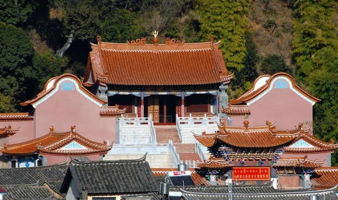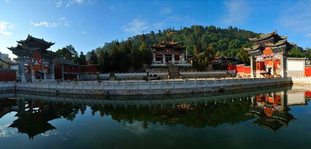 位于秀山后面,始建于明萬歷二十四年(1596年),因為寺旁有一泉水,古人就建此寺并塑龍王像供于寺中。白龍寺屬一進院前后各三間夾四耳、寺內(nèi)保存一塊明代碑刻,碑陰記錄了當時海貝巴(貝幣)的捐贈情況。上世紀80年代在白龍寺下開辟了茶花園、牡丹園、蘭花園,總占地8000多平方米。秀山古建筑群于1987年被省政府公布為“第三批文物保護單位”。