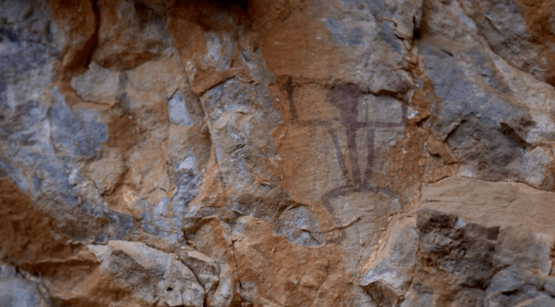 1985年發(fā)現(xiàn)的它克崖畫經(jīng)專家考證,成畫年代為距今三千年前后原始社會晚期,畫面描繪了古代人類的圖騰崇拜以及生產(chǎn)、生活情景,是少見的藝術(shù)珍品和研究古代人類社會的寶貴資料。崖畫位于青龍廠鎮(zhèn)它克村東北的扎營峰南麓。崖畫長19.5米,高3米,繪各種圖象92個,畫用赭紅色畫成。崖畫之上200米,有一個水平溶洞,當(dāng)?shù)厝朔Q“陰賓洞”。洞內(nèi)高大寬敞,幽深,洞口向陽,避風(fēng),干燥,適宜穴居,推斷為崖畫人居住過。崖畫畫面反映的是人類對太陽、星星、天體、自然的崇拜和對人類始祖——母親的崇拜和性崇拜。 1987年12月被云南省人民政府列為云南省第三批重點文物保護(hù)單位之一。