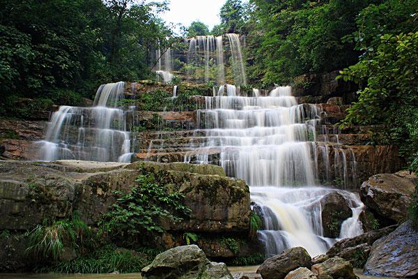 大關(guān)黃連河瀑布群距昭通市大關(guān)縣城5公里,有專線公路及中巴車直達(dá)景區(qū)。沿途山花爛漫、幽谷縱橫、清泉奔涌、鳥語花香。主要景點(diǎn)有仙女瀑、情郎瀑、少女瀑、月老瀑、鴛鴦瀑、洞房瀑、相思瀑、對歌瀑、姊妹瀑、銀鏈瀑、迎客瀑、壽星瀑、珠簾瀑及神秘莫測、千姿百態(tài)的白象洞,令人心曠神怡的水簾長廊和使人銷魂愜意的大滑板等20多處。加上形似飛鴿的世界珍稀植物珙桐花,堪稱天下奇景。