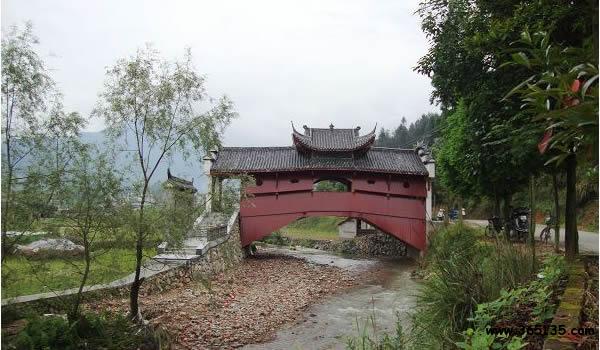 月山:又名金鄉(xiāng)、東莊、舉溪、舉水,位于慶元縣城東南57公里,現(xiàn)為舉水鄉(xiāng)政府所在地。境內(nèi)峰巒疊障,山川景色秀麗清幽。月山村后山形如半月,村前溪水曲似銀鉤,村莊坐落其間,如同山環(huán)水抱的一輪圓月,故名月山。月山村首尾各有一塊田土羊,分別稱為“考坑土羊”和“梅花土羊”,六座古廊橋形如長(zhǎng)虹臥波,亭臺(tái)樓閣錯(cuò)落有致,展現(xiàn)出一幅“小橋、流水、人家”那恬然而優(yōu)美的畫卷,置身其中,宛若人間仙境。時(shí)任處州知府孫大儒曾贊月山為“山環(huán)水抱一桃源”。