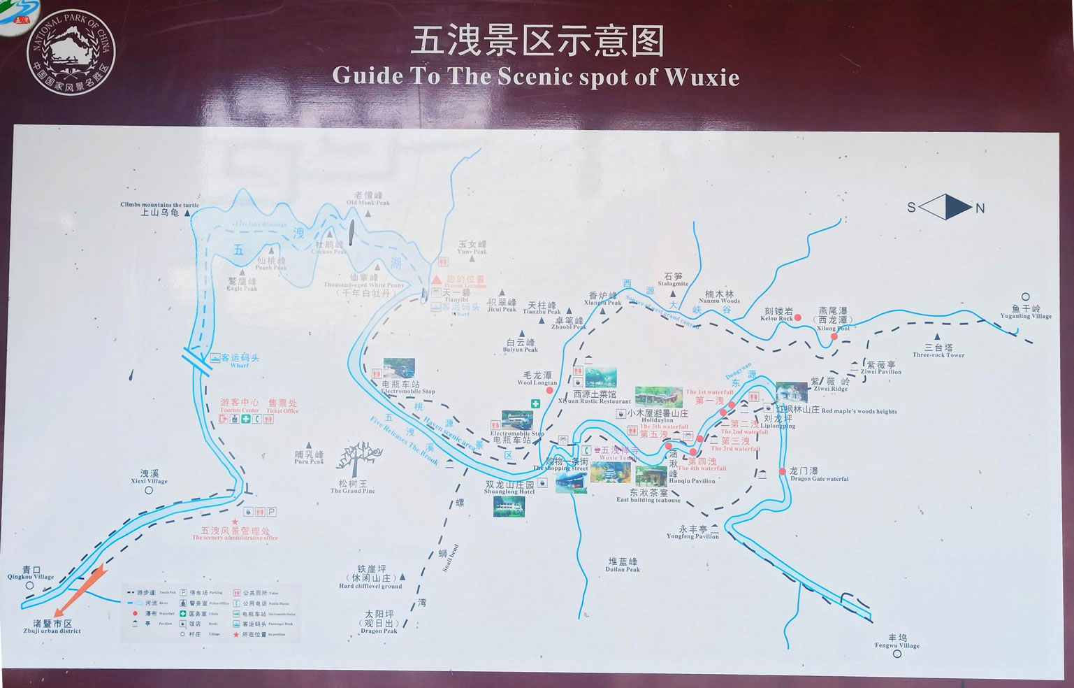 諸暨五泄風(fēng)景區(qū)位于諸暨市西北23公里處。72峰、36坪、25崖、10石、5瀑、3谷、2溪、1湖,為五泄構(gòu)成了天然的山水畫卷,素有“小雁蕩”之稱。當(dāng)?shù)厝朔Q瀑布為洩,一水折為五級,所以叫“五洩”。五泄飛瀑為大型奇幻古裝電視劇【水月洞天】取景處。