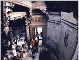 以鐘池為中心,有八條小巷向四面八方延伸,直通村外八座高高的土崗,其平面酷似八卦圖。小巷又派生出許許多多橫向環(huán)連的窄弄堂,弄堂之間千門萬戶,星羅棋布著許多古老縱橫的民居。接近鐘池的小巷較為筆直,往外延伸時漸趨曲折,而許多小巷縱橫相連,似通非通,猶如迷宮一般。外人進(jìn)入小巷,往往好進(jìn)難出,甚至迷失方向。